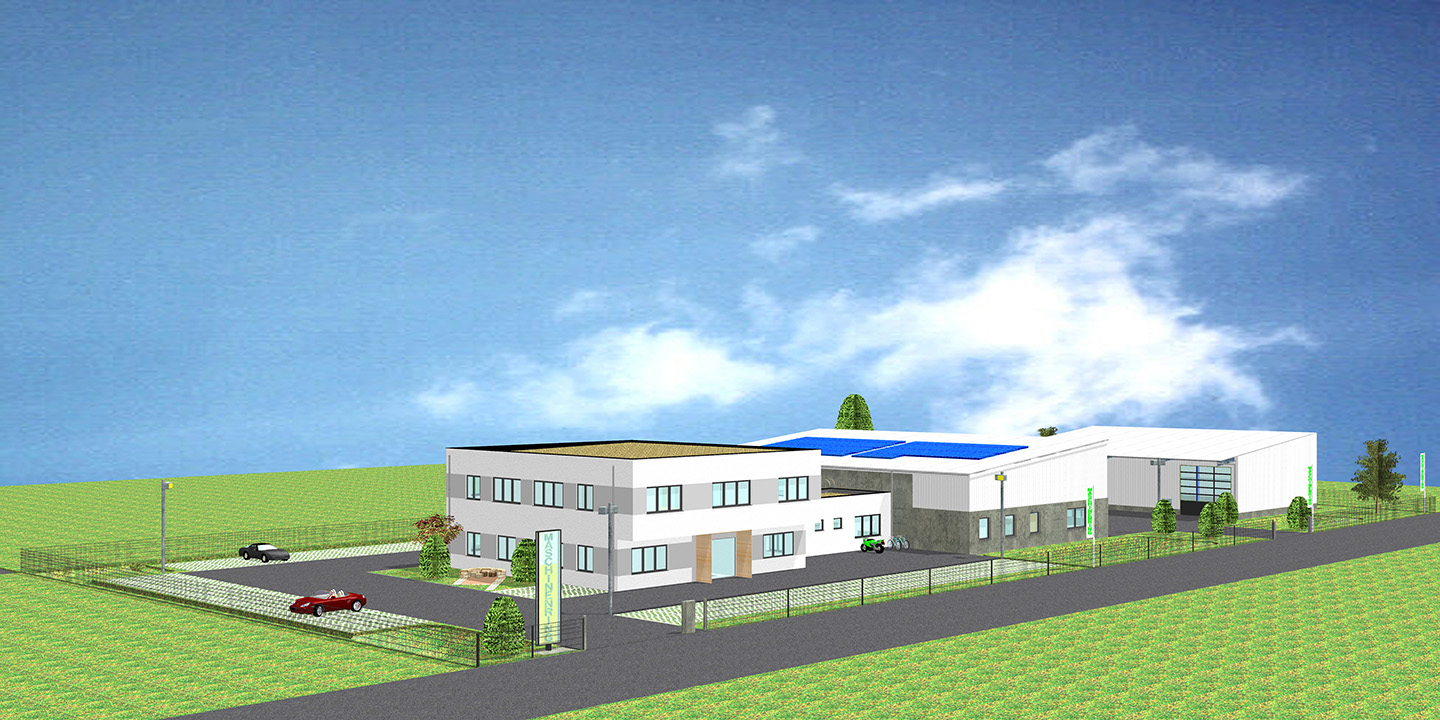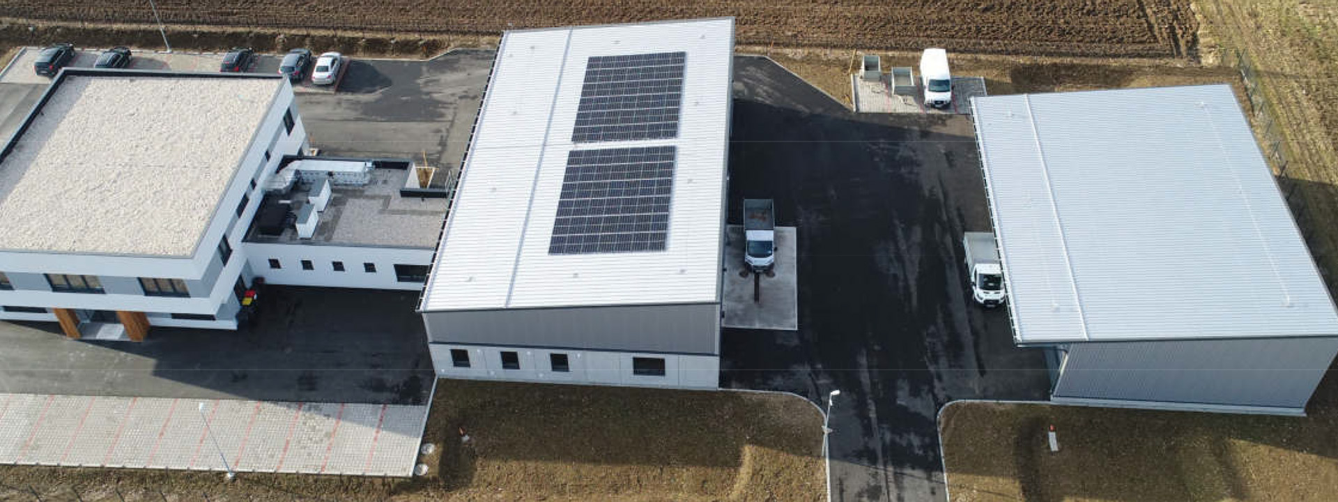 Neubau eines Bürogebäudes mit Sozialräumen, einer Warmlagerhalle, einer unisolierten Garagenhalle, einen Frei-Waschplatz, Werbepylon, Parkplätze sowie einer Photovoltaikanlage mit einer Leistung von 30 kWp. Zudem wurde eine Versickerungsmulde zur Versickerung von Regenwasser angelegt.